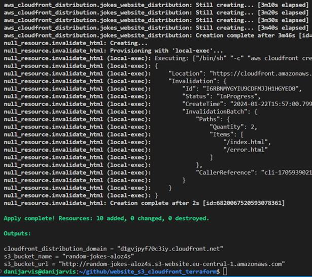 If you would like to try this IaC project yourself, you can access the complete Terraform code on my GitHub. Simply clone the repository and follow the instructions in the README.md file to set up your own static website on AWS S3 with CloudFront.